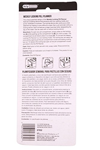 Studio : Ezy-Dose Publisher : Ezy-Dose Binding : Health and Beauty Product Description Daily life can be unpredictable at times. ItOs easy to miss something that you do every day when you're stressed out or tired. Sickness takes a toll on the body and the only way to move forward is to make sure you take your medication and rest. However, sometimes illness requires more than just a pill for a headache. Organization is the key to getting better and becoming your old self again. With a compartment for each day of the week, split up your doses for different daily medications and vitamins so you don't need to search through the medicine cabinet while trying to get out the door in the morning. Each box is a labeled with the first letter of the day of the week in bold lettering, helping to distinguish one from the next while groggy or in a rush. Add this storage set to your medicine cabinet as a reminder to yourself to stay healthy. 0