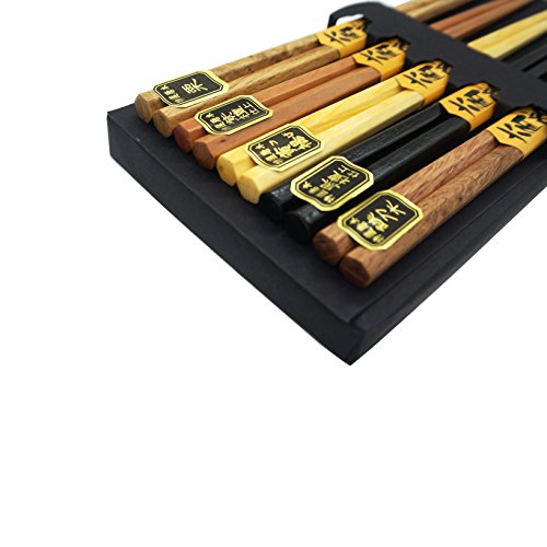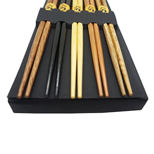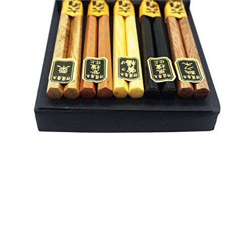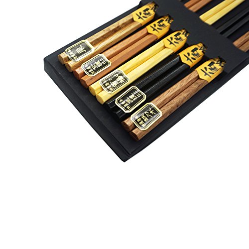 Blackcover Handmade Japanese Natural Chestnut Wood Chopsticks Set Value Gift (Hexagonal pack of 5)