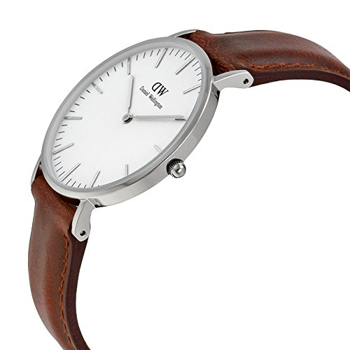 Brown calfskin leather watch with stainless steel case and white dialDurable and scratch resistant mineral crystalQuartz MovementCase Diameter: 36mmWater Resistant To 99 Feet