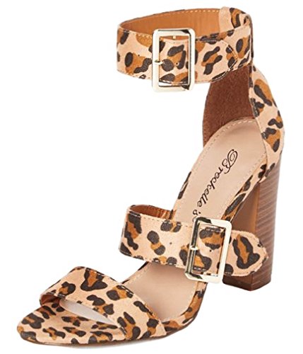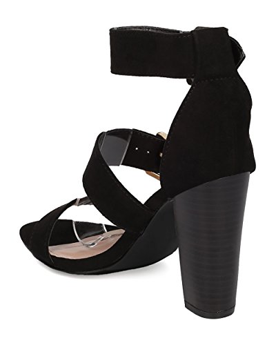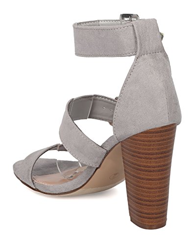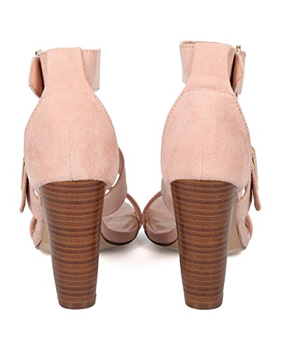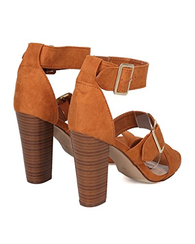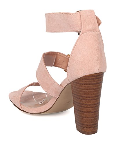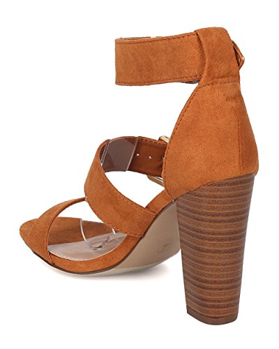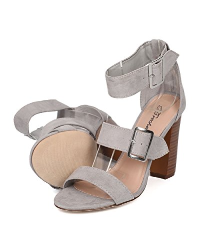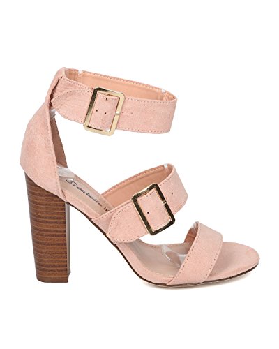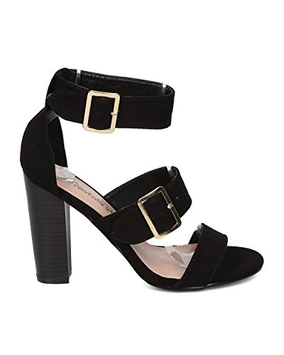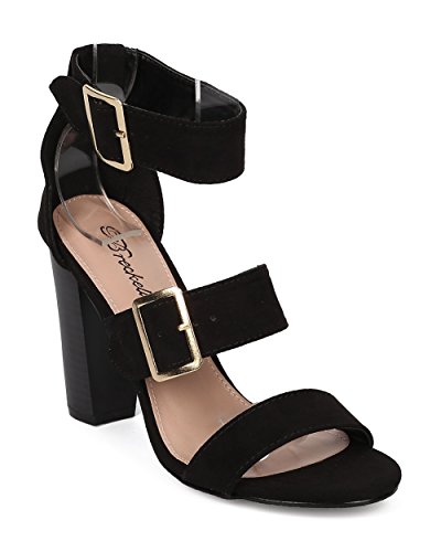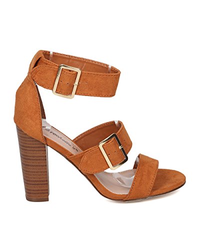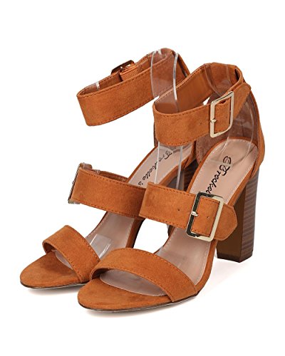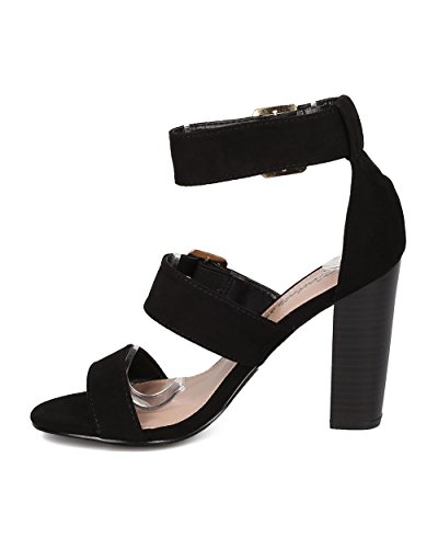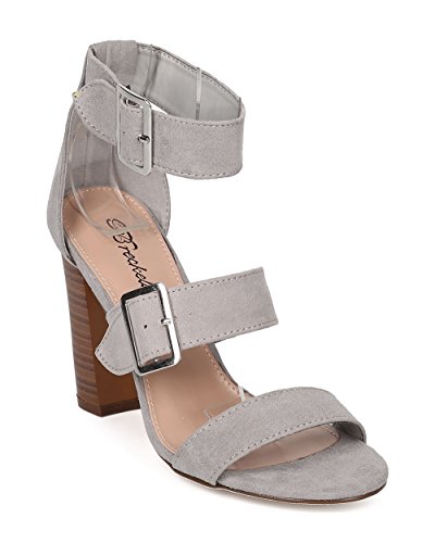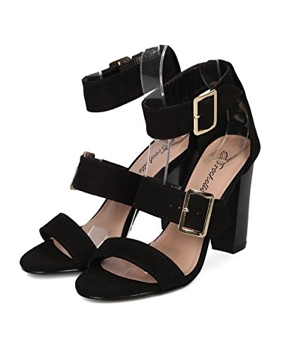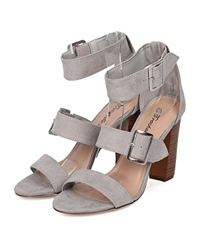 Faux Suede Open Toe Cigar Heel Sandal - Triple Adjustable Band Ankle Cuff - HA38 by Breckelles