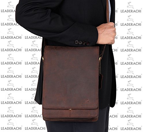 -. Feature : 100% GENUINE HUNTER VINTAGE LEATHER: Crafted from tough, 100% Semi Full-Grain Boot Leather, which takes hits well and looks even better with age. Full-Grain Leather is the top layer of the cow skin which is the most expensive and toughest part. The distinguishing feature of this leather is that the leather may have wrinkles, scratches that are inherent characteristics. / CRAFTMANSHIP, STICHES AND PARTS: Our Products are handmade by Professionally Skilled Craftsmen, because of which the bags have best finishing in its class. Brass/ Metal Fitting Buckles and Holders are Internally Lined with Strong Green Canvas make it Durable and Long Lasting. Every stress point on this bag is double-stitched and riveted or reinforced with hidden nylon strapping. / PERFECT FOR ANY SITUATION: Looks great in the courtroom, boardroom, on worldwide travel. We have received countless positive testimonials from company executives, lawyers, military personnel and college students who love their classic messenger briefcase bag. / FEATURES AND COMPARTMENTS: 11.5" Tall x 8.2" Wide x 2.5" Deep with 1 open main compartment with inside pockets for your phone and wallet, zipped inside pocket, a padded zip pocket on the back, leather flap with magnetic closure and adjustable shoulder strap