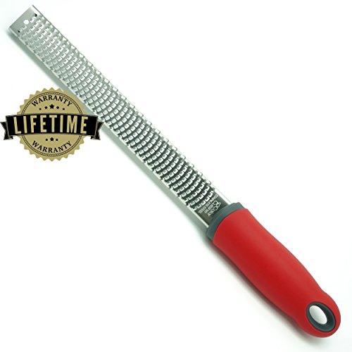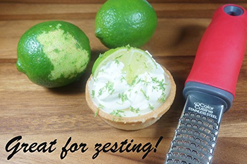 Color Cuisine Microetch Zester Grater with Plastic Blade Cover - Zest or Grate Cheese, Citrus, Orange, Lemon, Lime, Chocolate, Coconut, Ginger, Garlic, and More in Seconds! (Red)