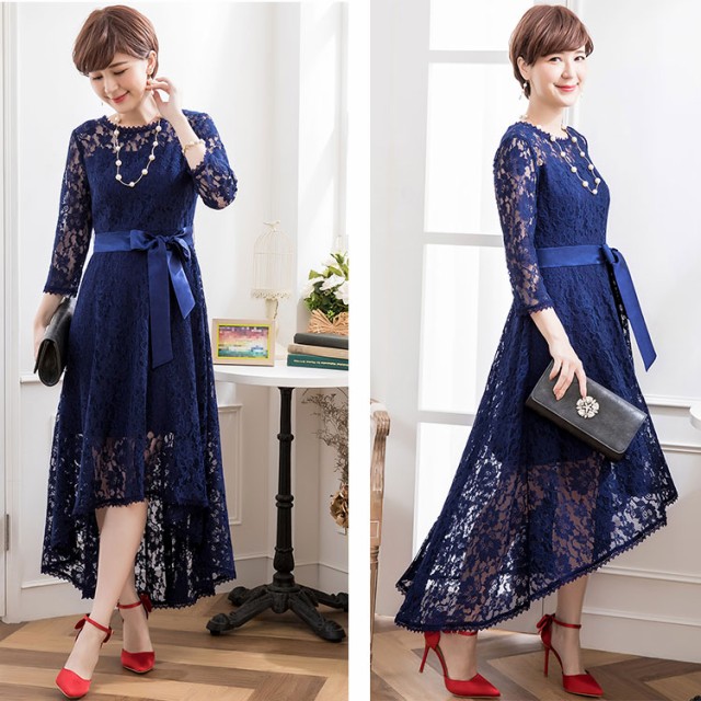 贅沢にあしらわれたコードレースとフィッシュテールの上品な揺れ感が歩く姿を美しく彩るミモレ丈ワンピースです。首周り・袖・裾にはケミカルレースが施され、華やかな印象にしてくれます。フィッシュテールのレイヤードスカートで脚を優雅に見せてくれます。