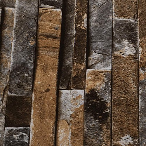 ★ Real 3D Effect : this textured wallpaper raised slightly for stones to create amazing 3D effect; vintage 3D brick pattern, looks like stone veneer and real bricks.