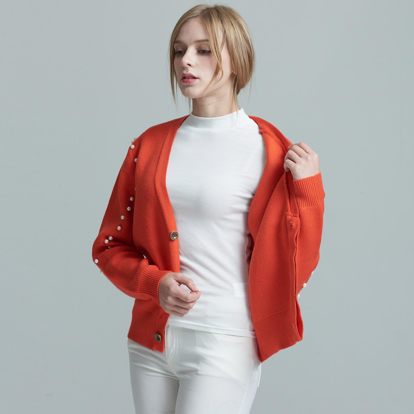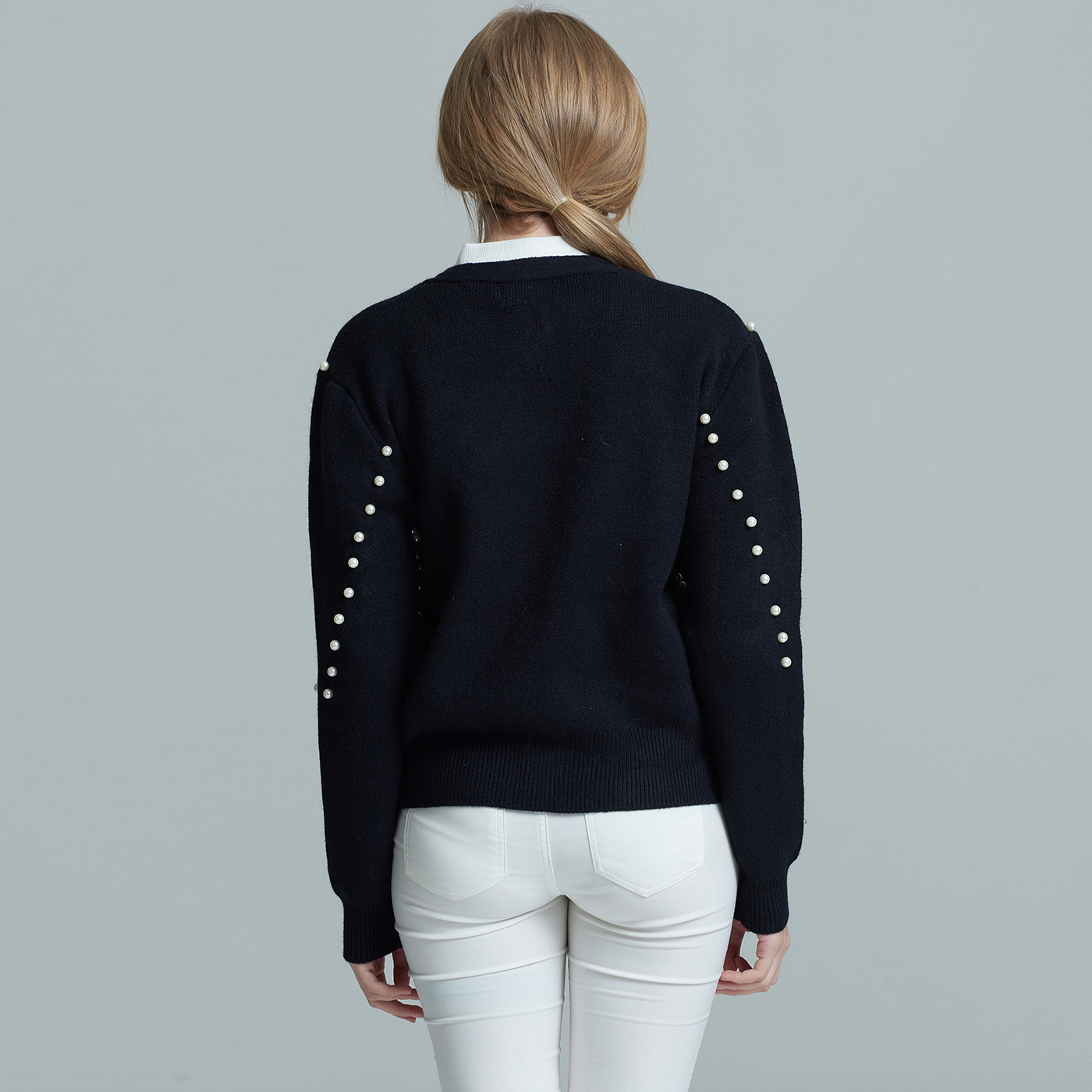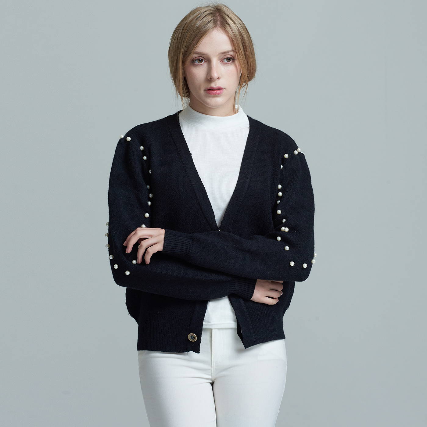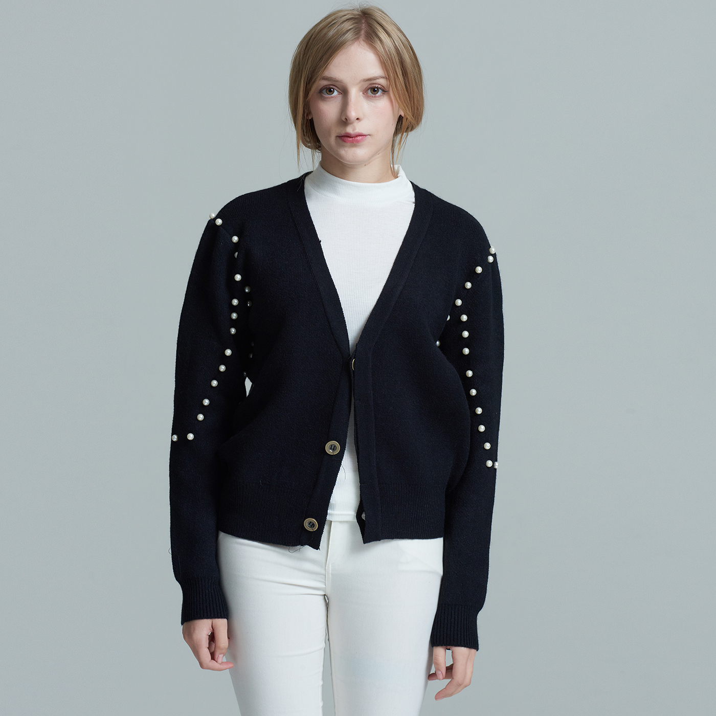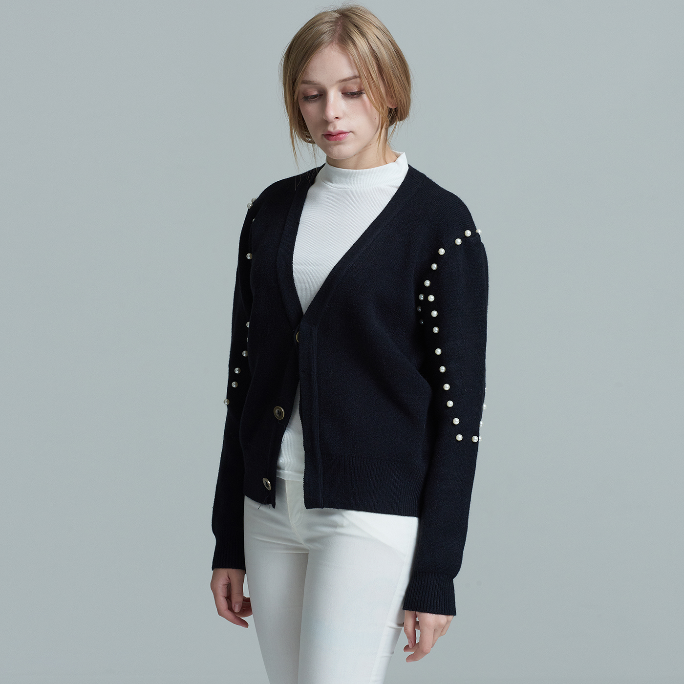 진주포인트 디자인이 돋보이는 패셔너블한 스타일의 가디건입니다.