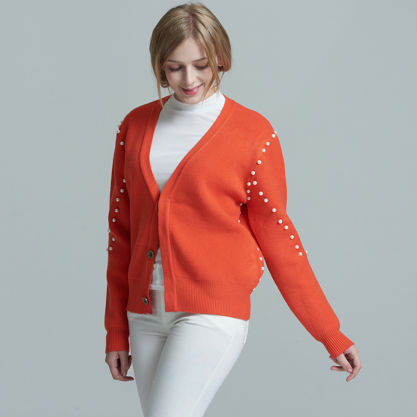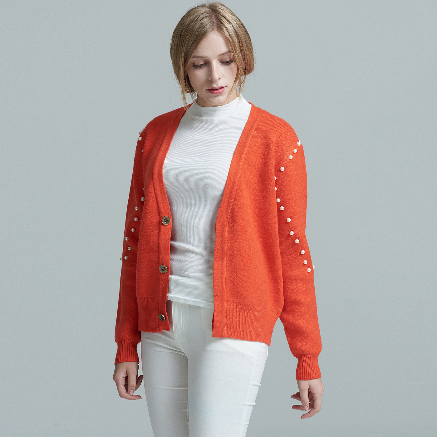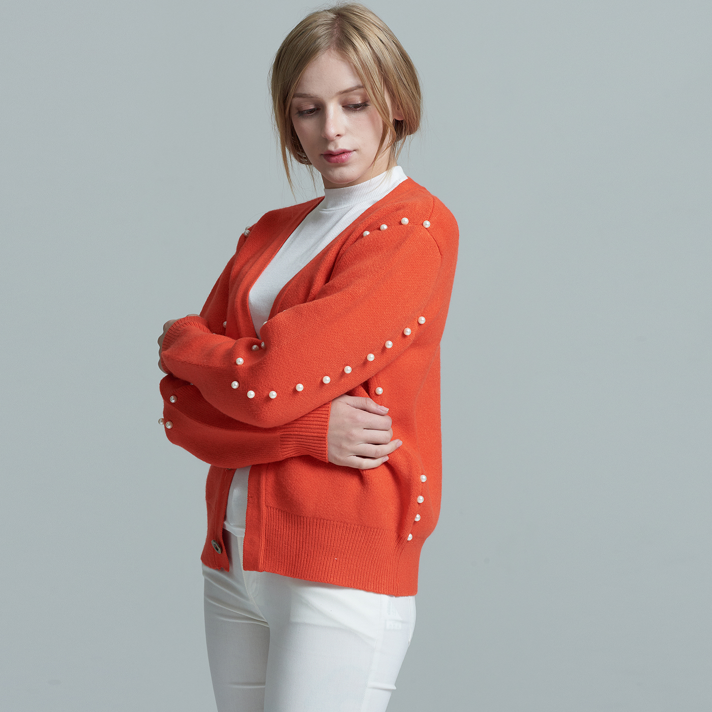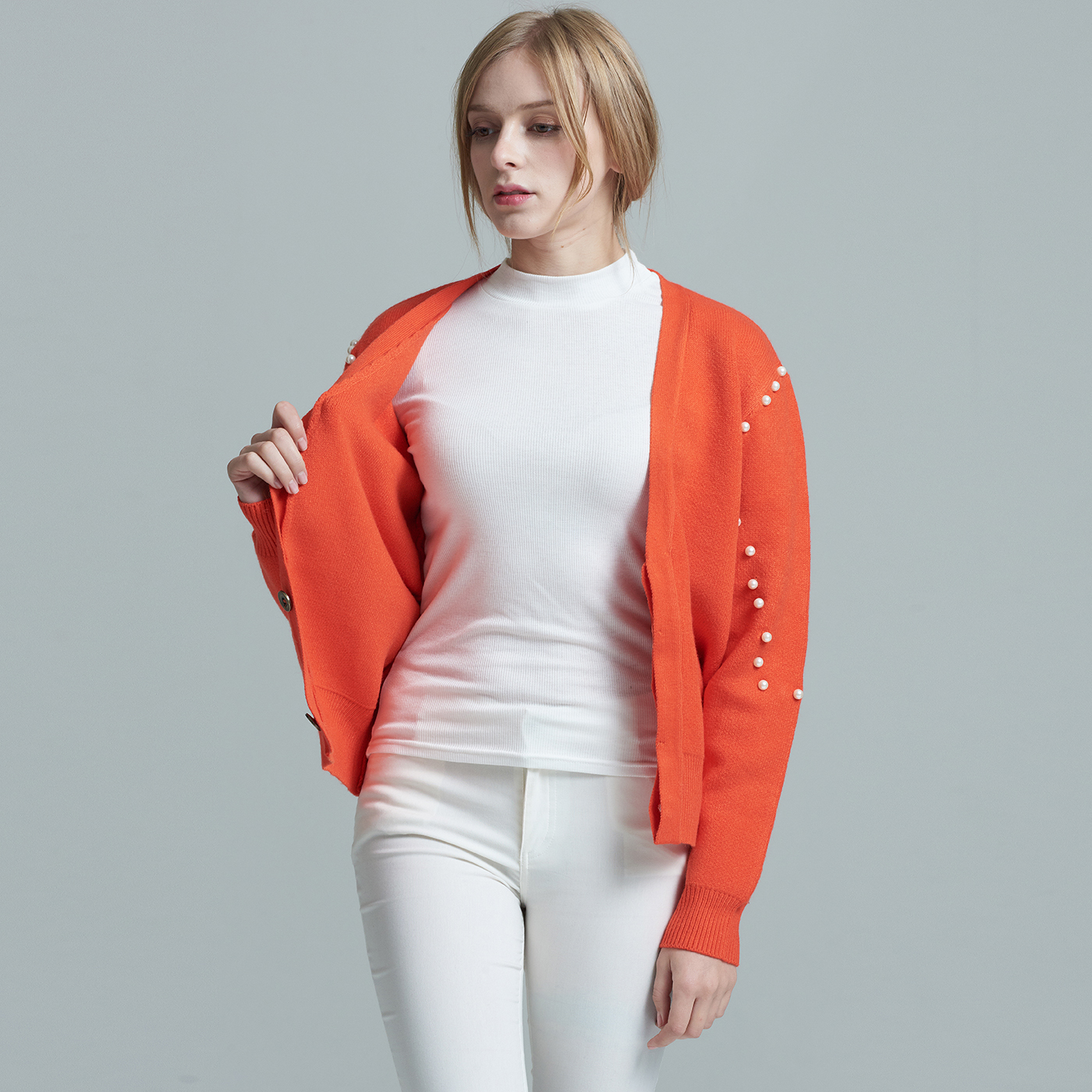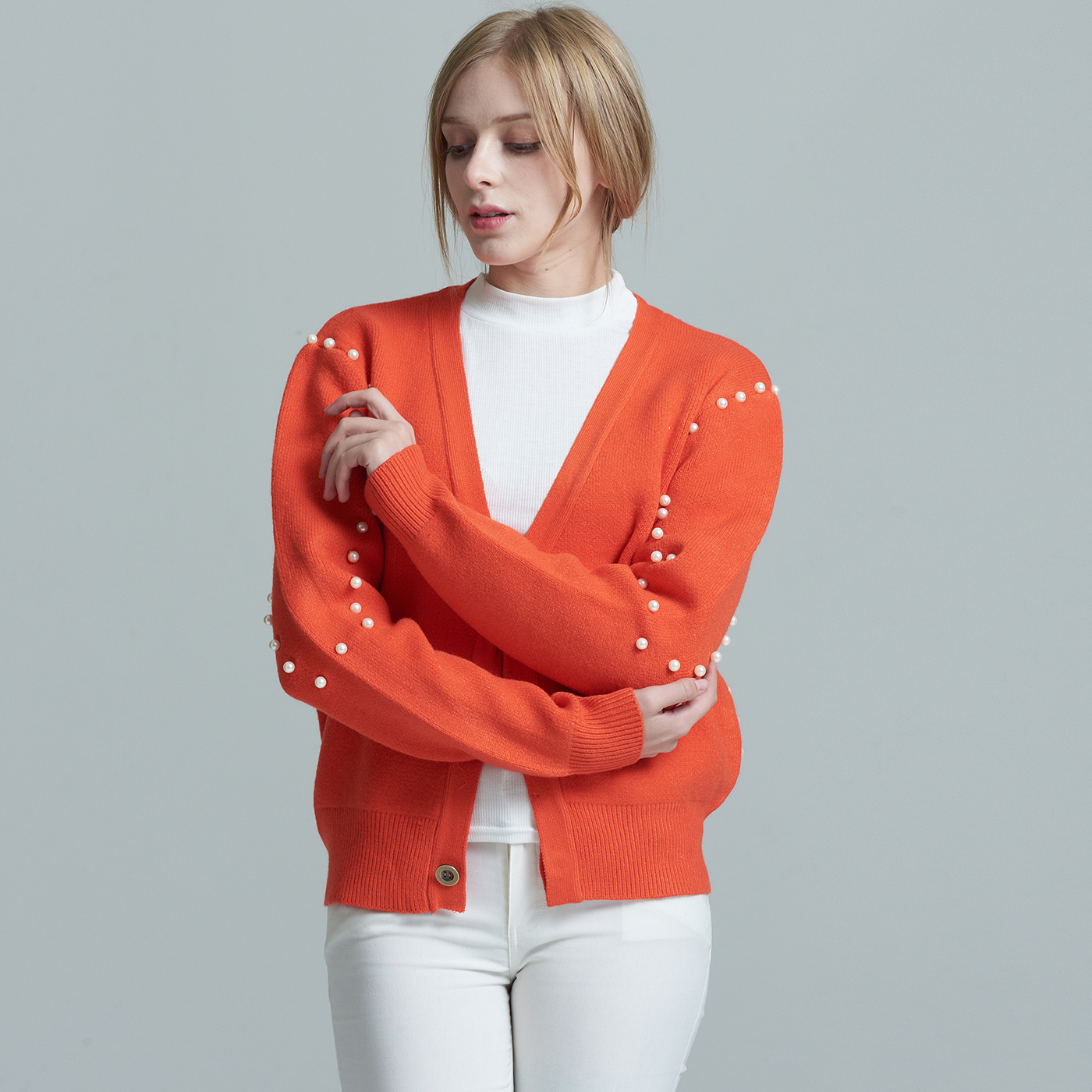 진주포인트 디자인이 돋보이는 패셔너블한 스타일의 가디건입니다.