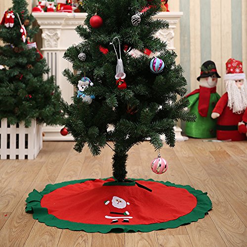 Mziart Christmas Tree Skirt Mat for New Year Party Holiday Christmas Decorations, 35-inch, Green Red (Santa Claus)