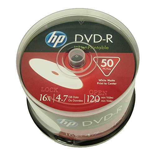 Studio : Hewlett Packard Publisher : Hewlett Packard Binding : Electronics Product Description HP 16X DVD-R media is ideal for sharing and archiving data, home videos, and photos. Their 4.7GB capacity can store up to 2 hours or 133 minutes of high quality video, and up to 3 hours of VHS-quality video. This 50-pack of DVD-R discs comes on a spindle for easy storage. 0