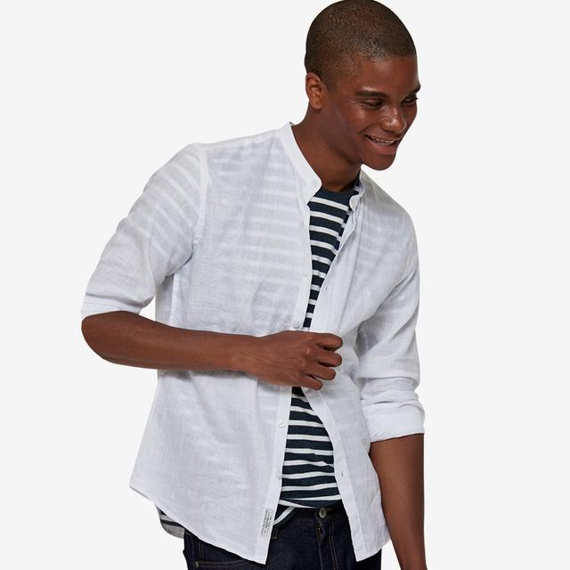 빈티지한 워싱 소재감으로 멋스러우며 차이나넥 디자인으로 트렌디한 외관을 보여주는 캐주얼 셔츠입니다.