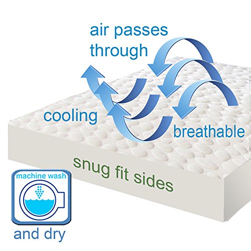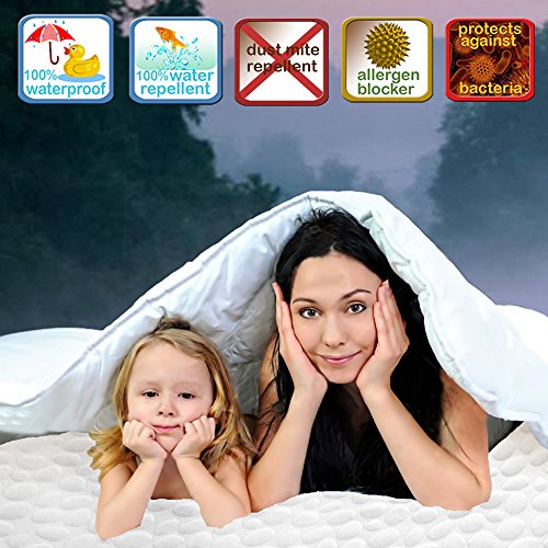-. Feature : Tencel (derivative of the eucalyptus tree) / Mattress protector is water resistant and quiet to lay on / Resistant to dust mites and other allergens / 38" wide x 80" long with 12" pocket depth