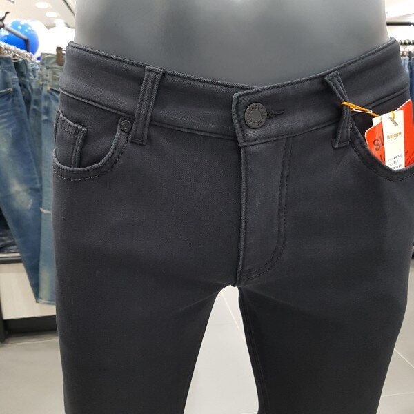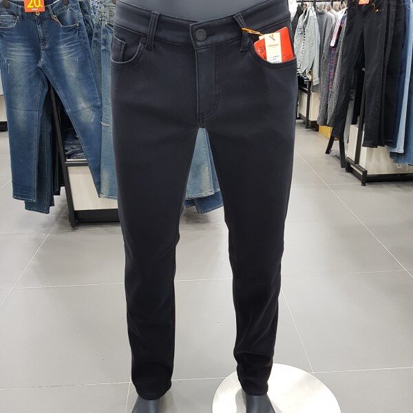 잠뱅이 남성 블랙 로프사 포인트 노말워싱 퍼본딩 타이트 일자 겨울 밍크 청바지입니다.