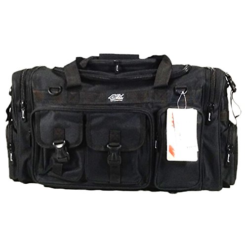 -. Feature : Material: 600D High Density Polyester for daily durable use. Interior water proof PVC lining provides protection from water. Available in Black, ACU Digital Camo, ACU Navy Digital Camo, Olive Green, Tan, Hunters Camo / Stow-away padded/adjustable backpack shoulder straps (stow away in zippered pocket when you don't need them), Removable adjustable shoulder strap with pad; Heavy duty branded zippers; main handle has wrap-around velcro strap for better grip / Excellent storage: 2 front buckle strap pockets, 2 zippered front pockets, U-shape opening main pocket, zippered pocket on top of main compartment flap, 2 side zippered pockets on each side / Dimensions: 26 in. (L) x 13 in. (W) x 11 in. (D) / Attachment points: molle strap system on sides, 2 front D-rings, 2 side (4 total) buckle snap straps