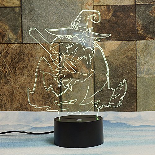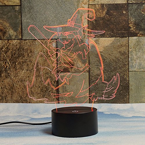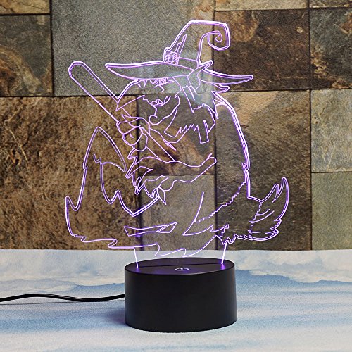 Evil Witch 3D Illusion Lamps, Elstey 7 Color Changing Touch Table Desk LED Night Light Great Gifts for Halloween Festival