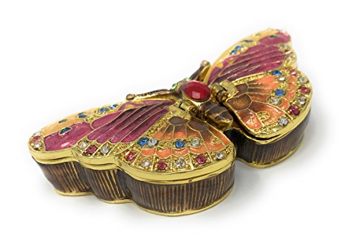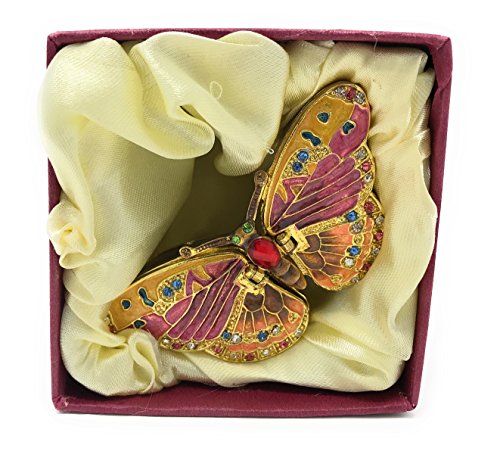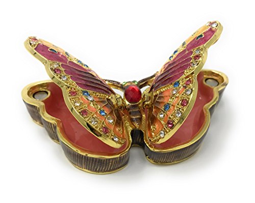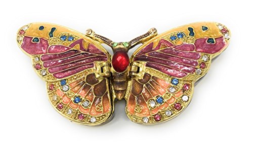 Enameled Pastel Butterfly Trinket Box by Kubla Craft, Accented with Austrian Crystals, 2 Compartments