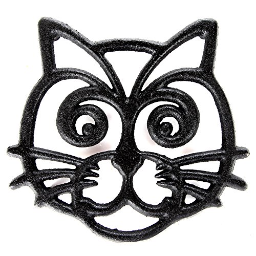 Studio : Home-X Publisher : Home-X Product Description Not only can do these cat trivets protect counter-tops or furniture, but they also make fanciful accents for a table, bookshelf or wall. Durable cast iron trivet with non-scratch rubber feet protects surfaces from direct heat. Great for granite and quartz counters, wood kitchen and dining table. Sturdy heat safe trivets support hot pots, pans, heavy pressure cooker, dishes, bowls and plates. Group a three or four together to use for larger platters, dutch oven, or soup tureens. Makes a "purr"fect gift for a wedding, house warming, bridal shower, birthday, Mother's Day or Christmas. Use these versatile cast iron cat trivets as drink coasters, under plants, or as wall decor. Compliments most home decors including country, vintage, or modern. Available in three styles: - Cat Face. Measures about 6.5" x 6" x 0.75". - Round Trivet with Two Cat Silhouettes. Measures about 6" diameter by 0.75". Includes loop hole at top for wall hanging. - Square Trivet with Single Cat in Window. Measures about 6.25" x 6.25" x 0.75". Hand clean with a damp cloth and towel dry. 0