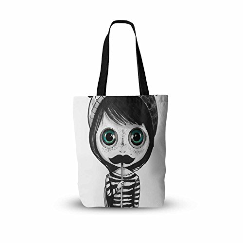 KESS InHouse Ivan Joh "Cute Mustache" Blue Green Painting Everything Tote Bag, 16" x 16", Multicolor