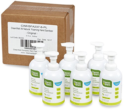 -. Binding : Health and Beauty -. Brand : Cleanwell -. Label : CleanWell Company -. Manufacturer : CleanWell Company -. ProductGroup : Beauty -. ProductTypeName : BEAUTY -. Publisher : CleanWell Company -. Studio : CleanWell Company -. Title : CleanWell Natural Foaming Hand Sanitizer - Original Scent, 8 Ounce (Pack of 3)