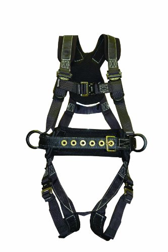 -. Feature : Three D-rings: aluminum 70 degree D-ring at back and two on hips / Quick-connect buckles on chest and legs / For use fall arrest / Made of nylon and polyester / Size: large