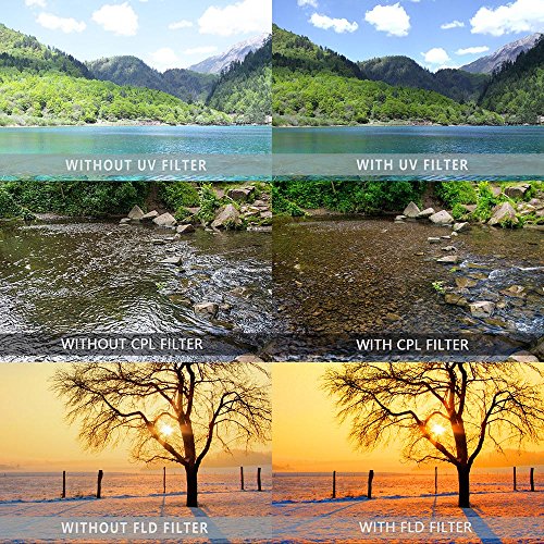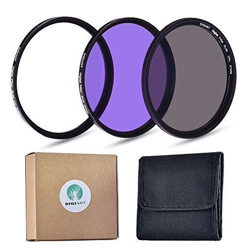 Studio : EJ GROUP CO., LIMITED Publisher : EJ GROUP CO., LIMITED Binding : Electronics Product Description DIGIANT 58mm 3pcs of Filters Kit(UV, CPL, FLD) Universal and Professional Filters Lenses Kit Fit for All Brands of Ø58mm Digital DSLR Camera: Canon, Fuji, Nikon, Olympus, Panasonic, Pentax, Sony,etc. UV filter Help to reduce haze, eliminate the undesirable blue cast and improve contrast by filtering out UV light. Especially useful in areas of altitude or snowy place. Besides, the filter absorbs UV light generally without affecting light in the visible region. CPL filter Remove or reduce reflections from non-metallic surfaces and dark blue sky while increasing the contrast saturation and maintaining the overall color balance in photographing. Fully compatible with the camera's autofocus and auto exposure functions. The light bends when passing through?CPL?to eliminate?exposure?errors. FLD filter Allow for shooting under fluorescent lighting. Bring warm natural light when under poor conditions. Package List 1pcs of Circular Polarizer CPL 1pcs of Ultraviolet UV 1pcs of Fluorescent FLD 1pcs of?Filter Carrying Pouch Worry-free Warranty 30-days Guarantee - If you're not completely satisfied, simply contact us to return the product for a full refund. 12-month Warranty - If the product does not work well, just contact us to exchange for you. 0