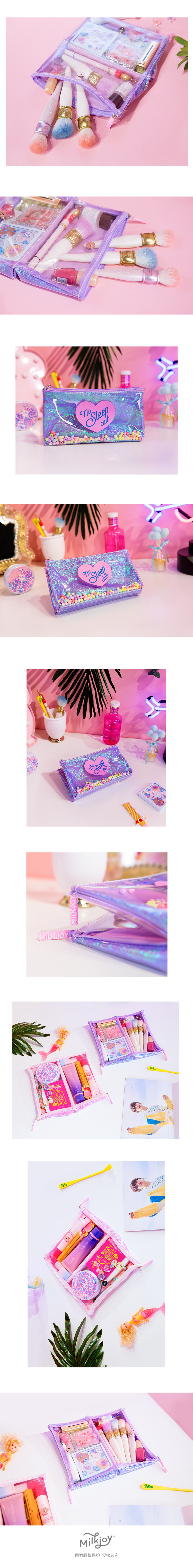 Milkjoyの眠れぬ少女両面化粧品バッグフレッシュガール透明大容量ゼリーペンケース