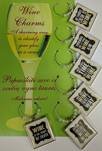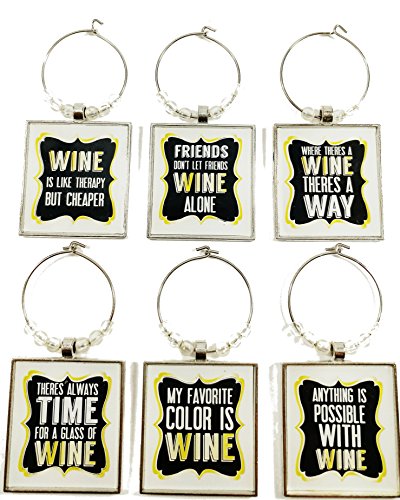 -. Feature : ♣ 6 FUN QUOTE WINE CHARMS - Make your parties come alive with our six motivational, inspirational & unique fun wine charms. Great conversation starter. / ♣ EASILY IDENTIFY WINE GLASSES - Adds value to any cocktail, wine or champagne glass. Easily secure the charm with ring lock onto the glass stem! Quotes are clearly written. Appealing, attractive clear white beads as an added elegance feature. / ♣ EASY TO USE, REUSABLE, DURABLE AND WATER RESISTANT STAINLESS GLASS TO AVOID WINE STAINING - Durable and lightweight zinc alloy, stain and water resistant to ensure these charms last a very long life! Very easy to clean in the sink or dishwasher. / ♣ SPICE UP THE LIFE OF YOUR PARTY & MAKES A PERFECT GIFT FOR ALL OCCASIONS! - Feel good knowing that your friends and family are intrigued by the elegance of these charms to be the start of any conversation! A great way to add Good Vibes to any event! / ♣ 100% MONEY BACK GUARANTEE! At GoodVibez, we stand behind our product and offer 100%, money back guarantees on our product. You can return it as per Amazon's return policy and receive your money back 100% guaranteed!