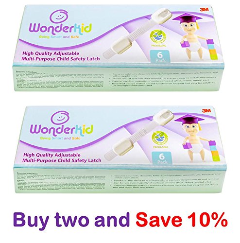 WONDERKID Top Quality Adjustable, Reusable Child Safety Locks - Latches to Baby Proof Cabinets, Doors & Appliances (6 pack, Black)