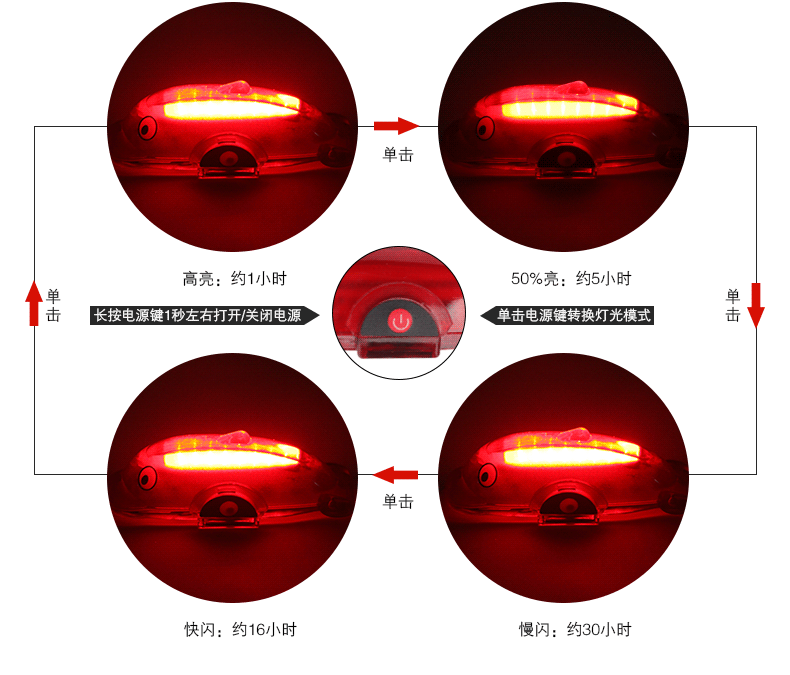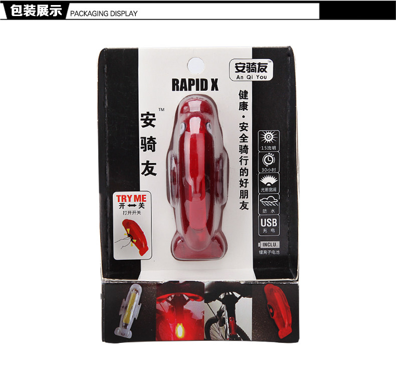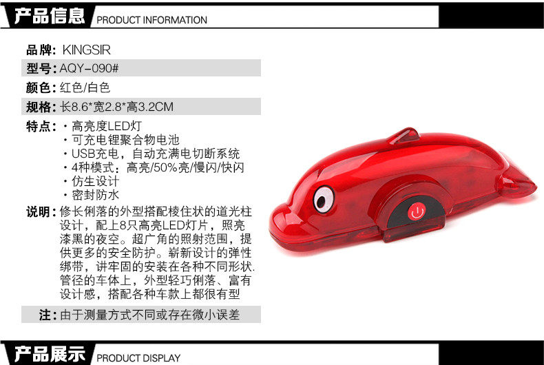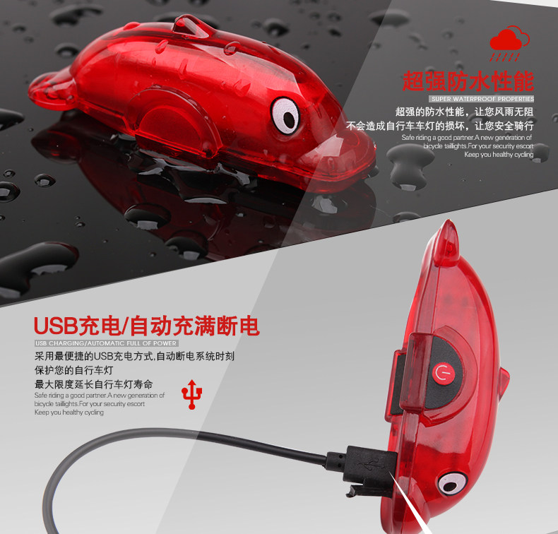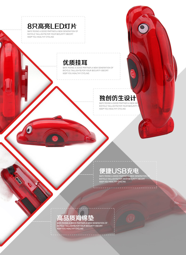 ?KINGSIR自行车灯 海豚灯可充电 夜骑警示灯车尾灯骑行装备配件