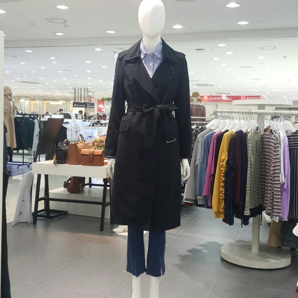 넥비죠와 소매 밑까시에 체크배색이 포인트되는 롱 바바리입니다