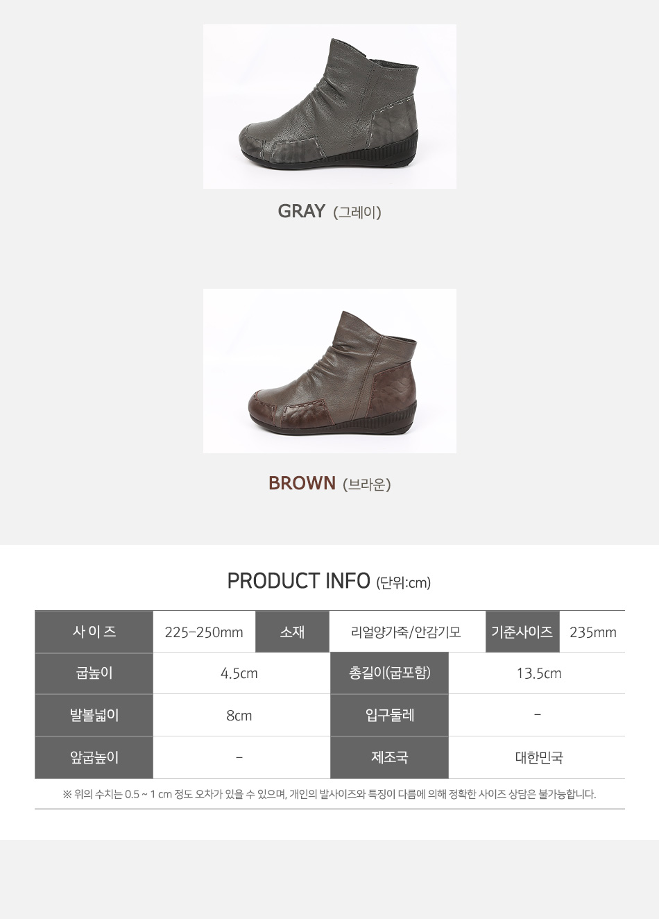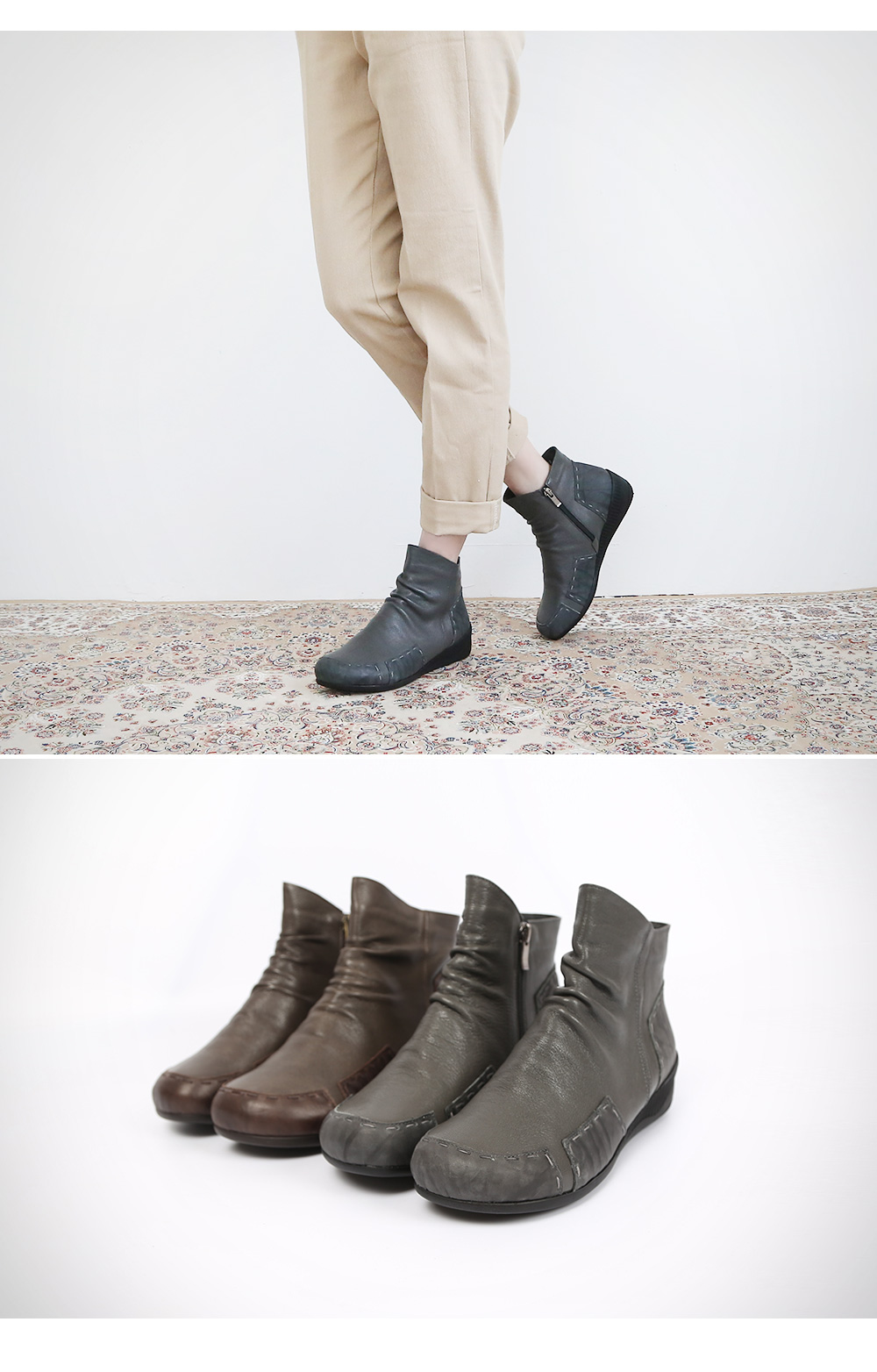 GGG2144. 니드리나[MD COMMENT]빈티지하면서 캐쥬얼한 디자인의 리얼양가죽 앵클부츠입니다.부드러운 리얼양가죽으로 제작되어 고급스러운 요아이는발등위의 셔링포인트로 밋밋하지않게 포인트가되어 트렌디합니다 =D4.5cm의 부담없는 굽높이로다리라인을 예쁘게 살려주고 장시간 착화시에도 부담없으니데려가겨서 다양한 스타일링에 드레스업 해보세요 ♥