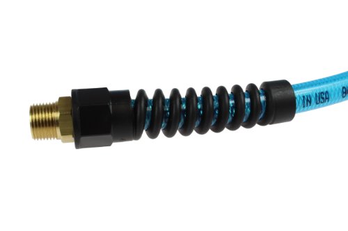 Coilhose Pneumatics PFE60254T Flexeel Reinforced Polyurethane Air Hose, 3/8-Inch ID, 25-Foot Length with (2) 1/4-Inch MPT Reusable Strain Relief Fittings, Transparent Blue