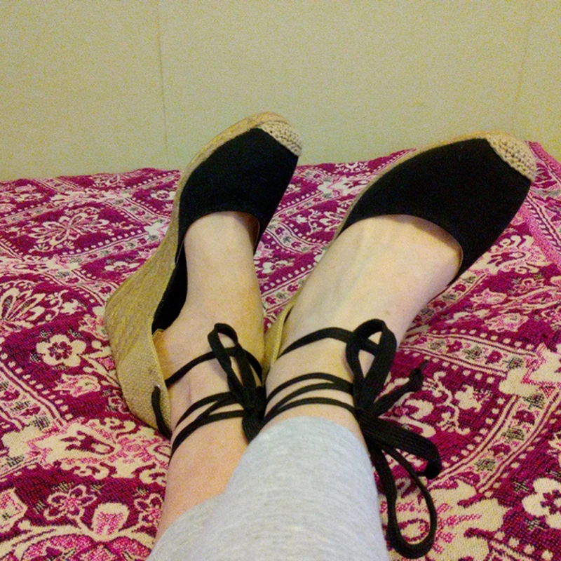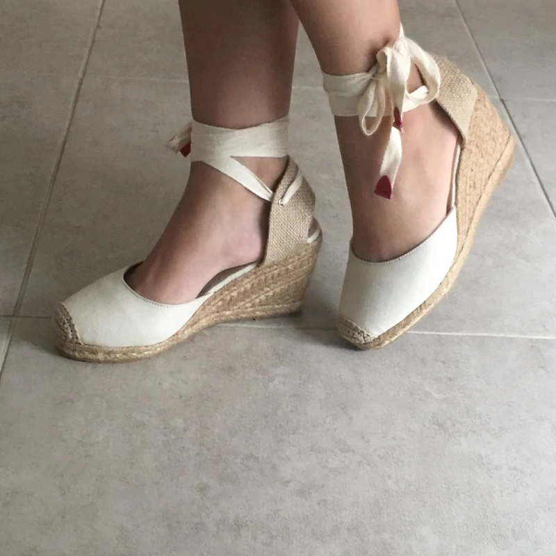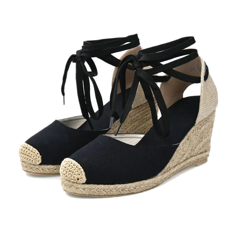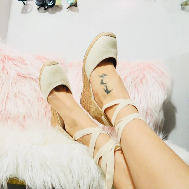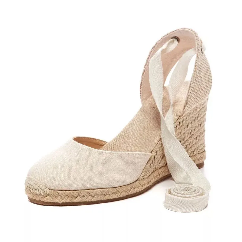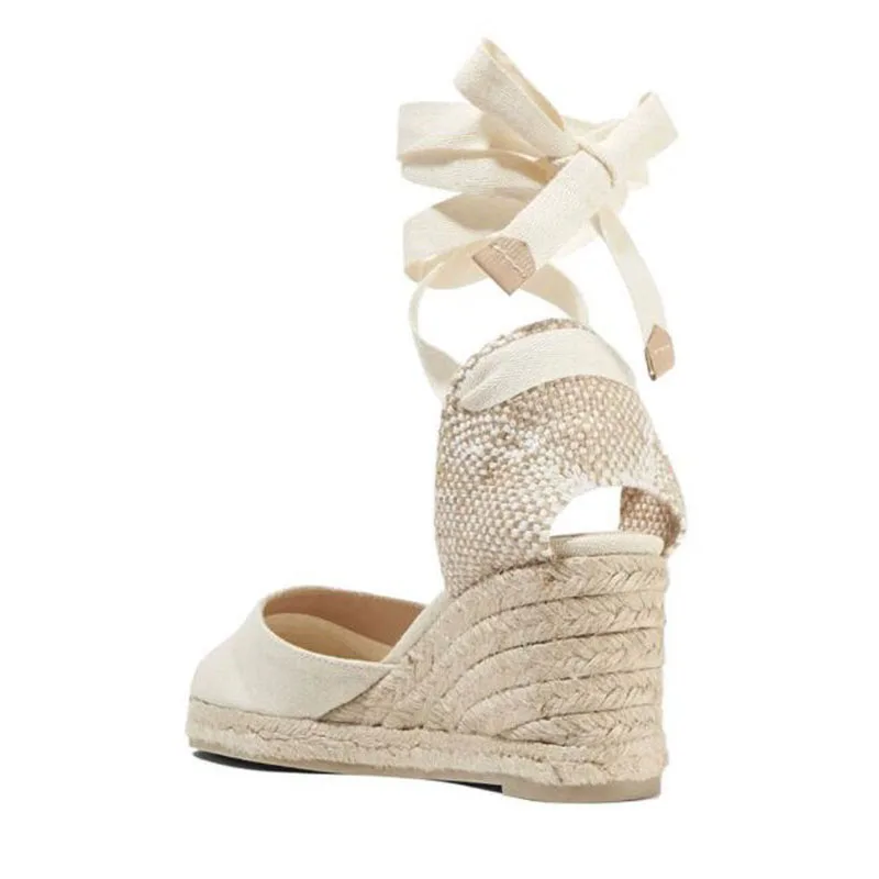 Futures 5:Lace up Women Espadrilles High Heel Fisherman Sandals