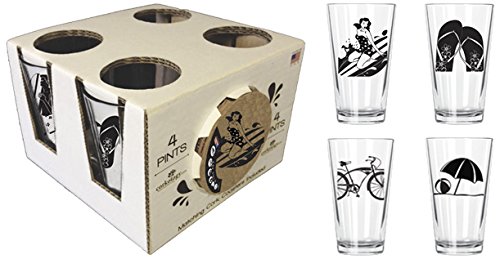 Corkology.com 382-1 Beach Life Pint Pack with Matching Coasters Set, Clear