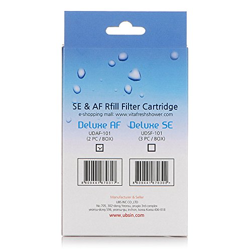 -. Feature : Includes TWO (2) ACF Replacement Filter(202ACF) / ACF Refill Filter(202ACF) of Deluxe AF Shower Filter(UDAF-202ACF) was developed for the purpose / of doubling the performance / (Sedimentation + Activated Carbon) and utility of the shower filter for water treatment. / Available for 4~6 months (around 11,400 ~ 17,000 gallons / depending on water quality and usage)