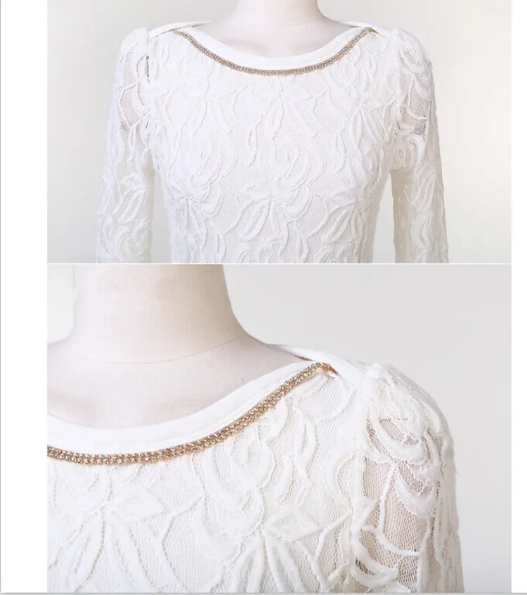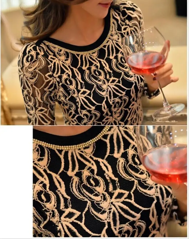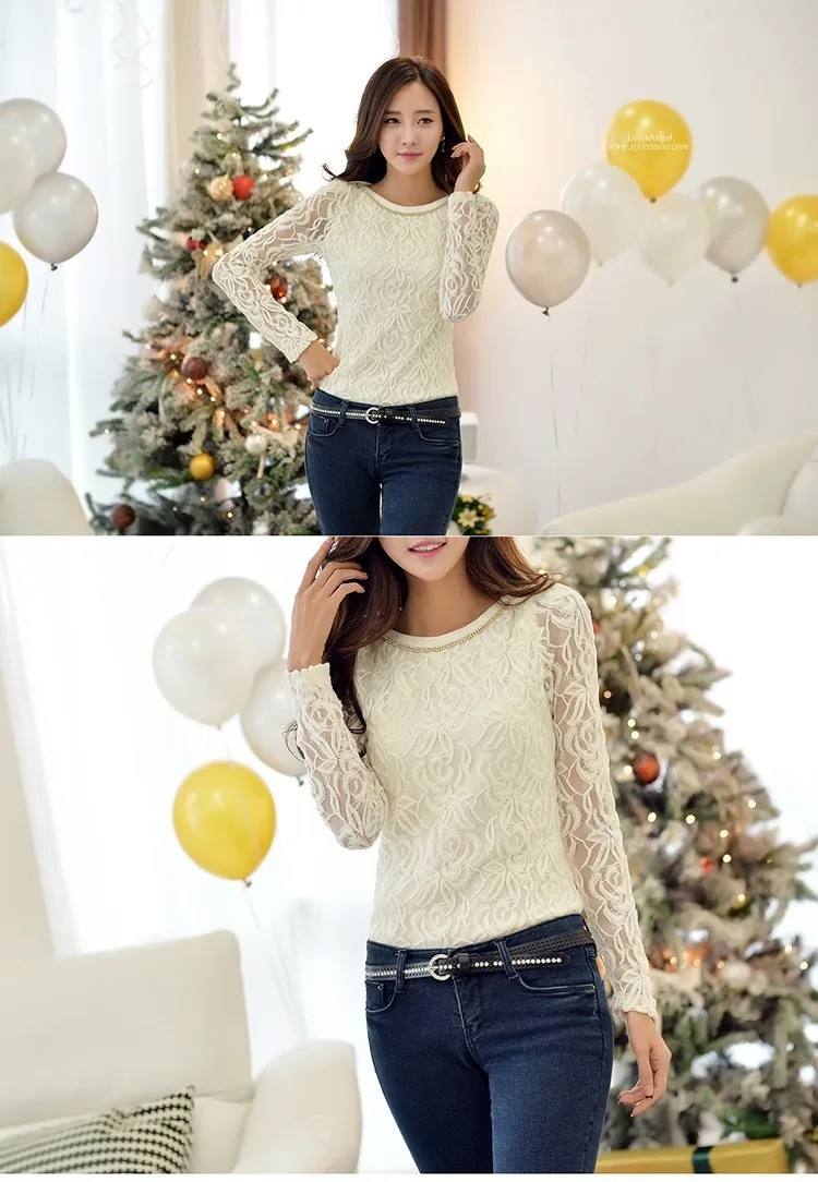2015 New Arrival Women Clothing Korean Women Elegant Vintage Female Shirt Plus Size Long Sleeve Black Lace Chiffon Blouse 651E05