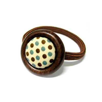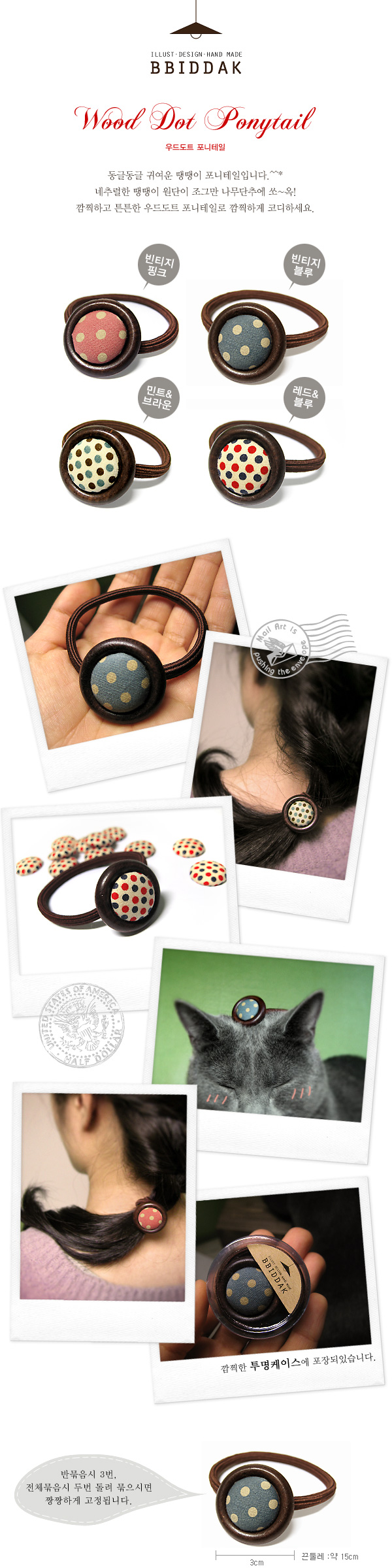 밤색 나무단추와 튼튼한 고무줄로 만들어진 포니테일입니다.