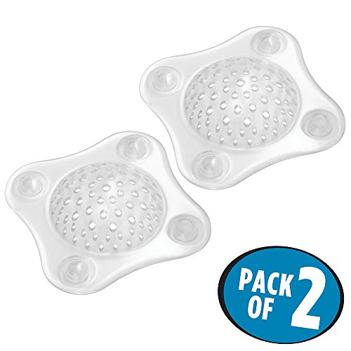 mDesign Bathroom Shower Drain Cover, Hair Catcher - Pack of 2, Clear
