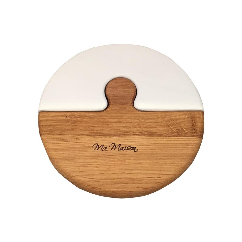 白と木目のコントラストがスタイリッシュなパズル状の鍋敷き。パーツを分けて別々に使うことも出来るお役立ちアイテムです。