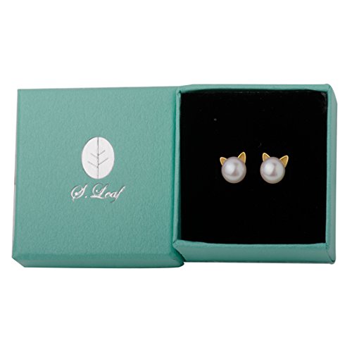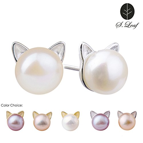 -. Title : S.Leaf Cat Ear Stud Earrings Freshwater Cultured Pearl Stud Earrings Sterling Silver Ear Studs