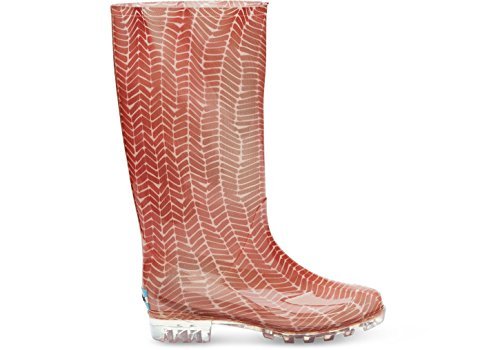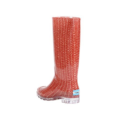 -. Title : Toms Cabrilla Rain Boots Red Herringbone Print 10006874 Womens 6