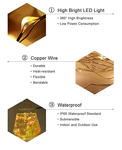 - 【Special decoration effects】 These copper string LED lights are very suitable for any occasion, decoration, and purpose that comes in mind. Ideal for home décor, patio, garden, curtain, wedding, Christmas, Halloween, parties, anniversaries, Easter, DYI crafts and more!
