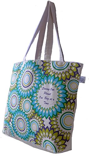 EcoRight Reusable 100% Cotton Canvas EcoFriendly Large Tote Bag Printed "Floral" (Natural) - 0201G04
