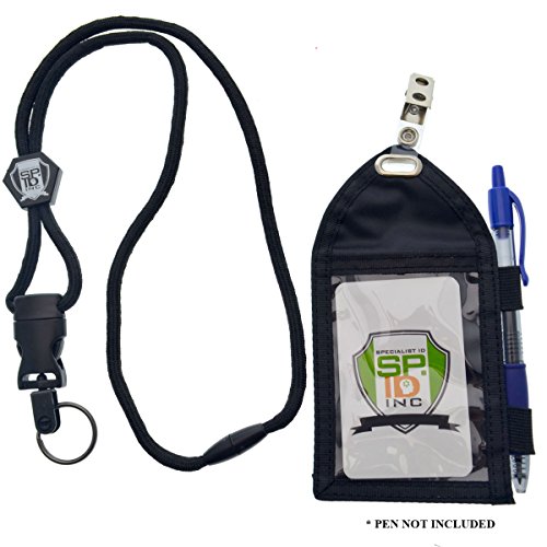 Ultimate Nylon Badge Holder with Pen Loop Key Ring and Heavy Duty Lanyard, by Specialist ID (Black)