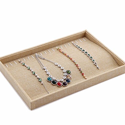 MyshineStyle 20 Hooks Linen Jewelry Tray Showcase Necklacec Holder Display Storage Case Organizers(Necklace Jewelry Tray)