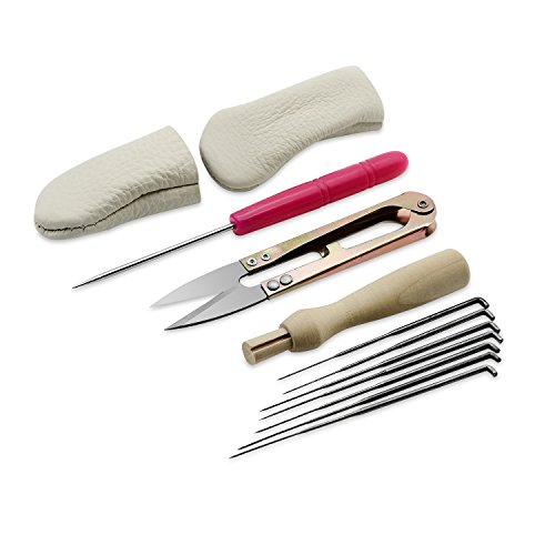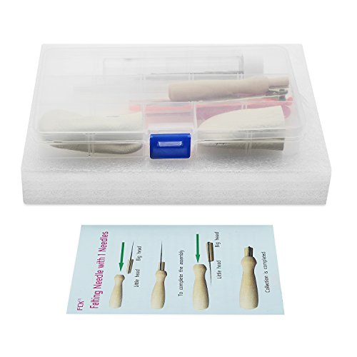 - Contains foam pad,wooden felting handle,7 needles,scissors,awl,2 leather finger cot,glue stick For needle felting Craft