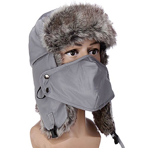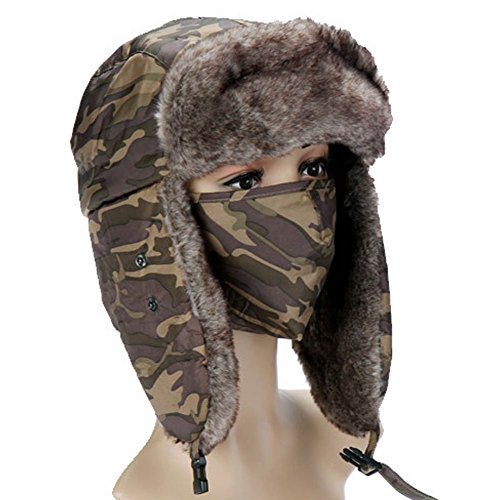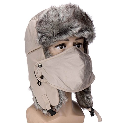 Womens Mens Winter Thick Trapper Hat Ear Flap Cap with Breathable and Detachable Mask Description: - Material: cotton