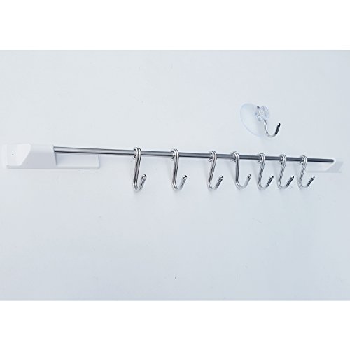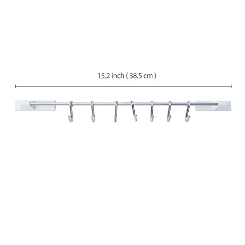 Kitchen Tools Stainless Steel Utensil Hanging Rack - 7 Hooks to Hold and Organize Kitchen Tools, Utensils, Pots, Pans on Wall Mounted hanger Bar Rail