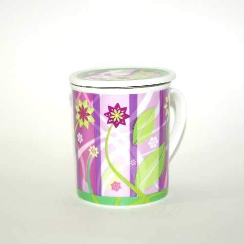 -. Title : Agatha's Bester Smart Porzellan-Teesiebbecher mit Deckel und Edelstahlfilter, lila-grün
