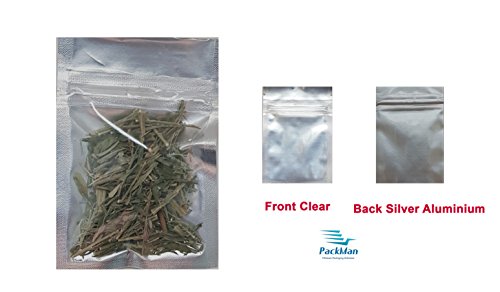 Front Clear; Back Aluminum Foil / Quality Laminated Material Construction: PET (polyethylene terephthalate) + Aluminum +PE (polyethylene) FDA and USDA compliant. The most inner area is PE, which is perfectly suitable for packaging foods and herbs. Effectively maintains Taste and Scent.