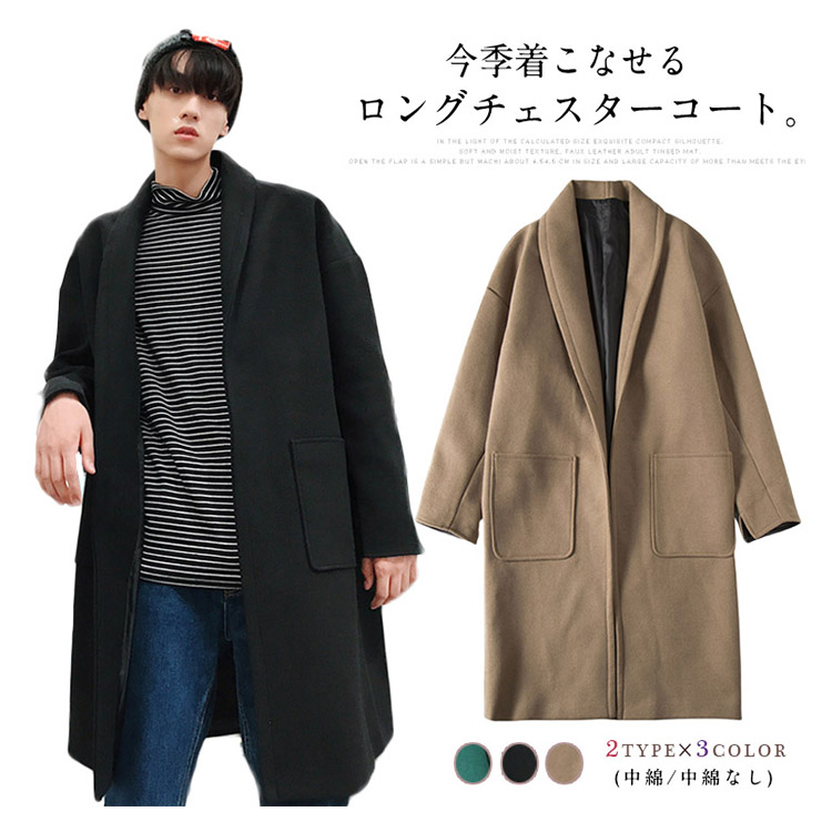 | 今季着こなせるロングチェスターコート。ゴワツキも少なく温かさと柔らかい肌さわりを実現するメルトン素材使います!真冬寒さ対策の中綿入りタイプもあります。ヒップラインがすっぽり隠れるロング丈にゆとりも持ちます。インナートップスを選ばず羽織るだけで様なるチェスターコートはビジネスからカジュアルシーンまで幅広い着こなしが可能! | |