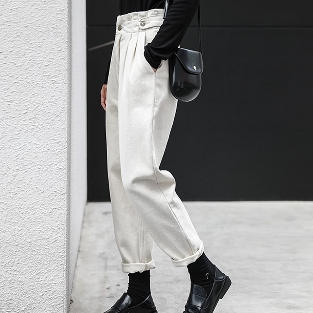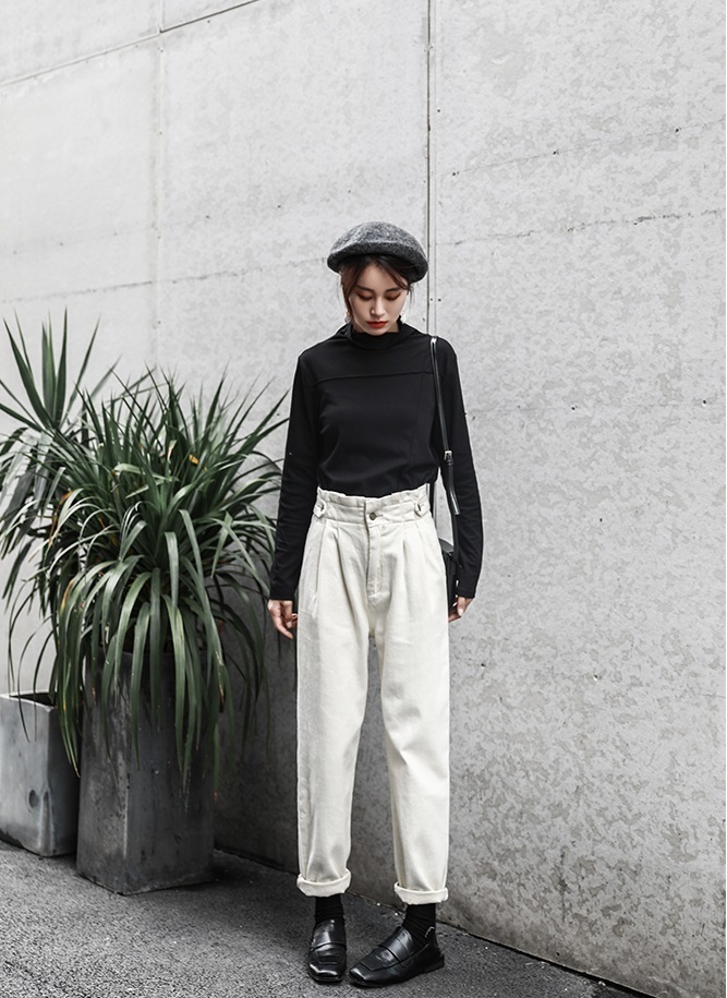 フロントタック入りのハイウエストタイプでトップスinスタイルがサマになるデザイン★